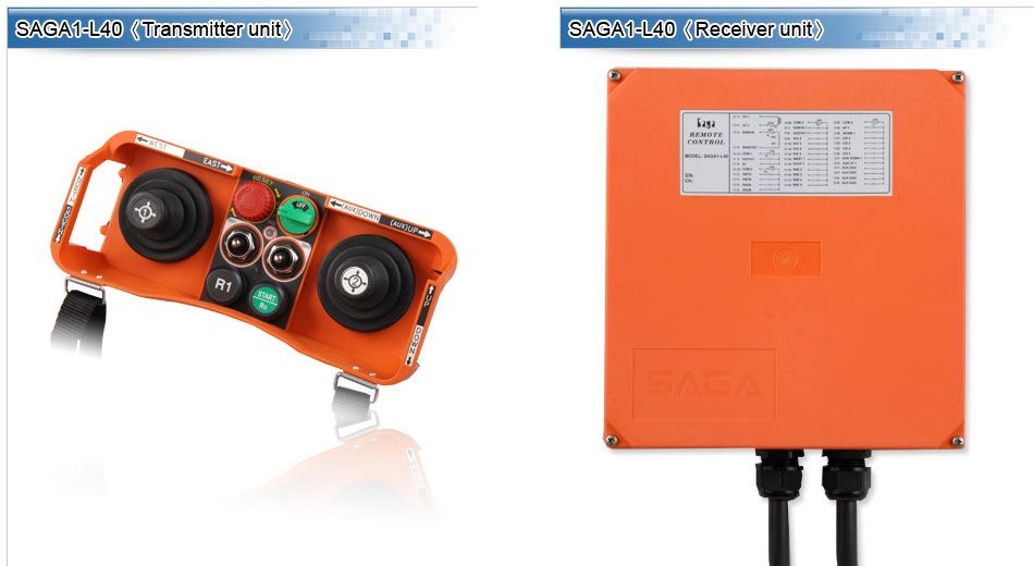 Tiene sus propias características sobresalientes alternativos en la programación simplemente configurar en el software PC solicitado torre grúa y equipos de carga más pesada. SAGA1-L40: cinco pasos 2 joysticks + 2 interruptores de palanca de tres posiciones + 2 solo paso pulsadores + botón EMS + Tecla Rotary.